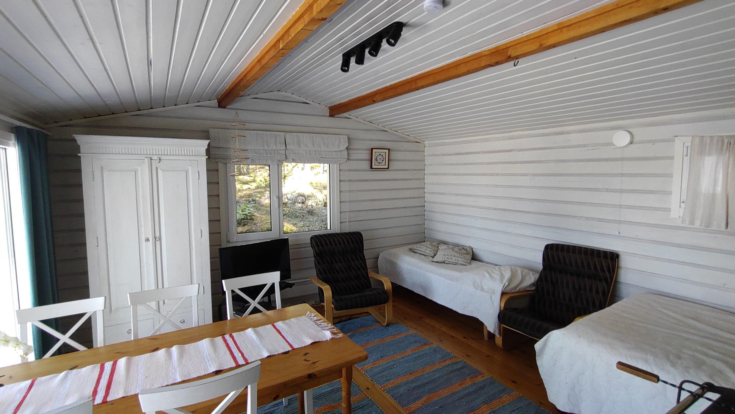 Im nördlichen Teil von Pekkala befinden sich das Wohn/Küchenbereich, während sich im südlichen Teil die holzbeheizte Sauna mit Dusche und ein Zweibettzimmer befinden. Es gibt ein Wohnzimmer -grosses Fenster mit Blick auf den Sonnenuntergang, Ostsee-Archipel. Die Küche ist komplett ausgestattet. Pekkala ist ein traditionelles finnisches Mökki mit zwei Terrasse und felsiger Kiefernwald von Hinterhof aus. Haustiere sind willkommen.